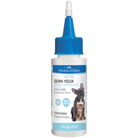 La LOTION NETTOYANTE POUR LES YEUX limite l’apparition des affections oculaires fréquentes chez le chiot et le chaton. Elle permet un nettoyage régulier de l’œil, des paupières et conjonctives. Elle est calmante et apaisante.