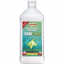 Activité bactéricide conforme aux normes NF EN 1276 à 1 % en 5 minutes en conditions de saleté à 20 °C, NF EN 13697 à 1 % en 30 minutes en conditions de saleté à 20 °C et NF EN 14349 à 1 % en 30 minutes en conditions de saleté bas niveau à 10 °C. Il élimine la plupart des microorganismes présents dans l’environnement animal et l’environnement de la maison tout en laissant un parfum frais et agréable. Diluer SANIFRESH au dosage de 1 % (soit 10 ml par litre d’eau) et jusqu’à 5 % pour une meilleure odorisation. Appliquer par aspersion, arrosage ou pulvérisation la solution obtenue sur les surfaces à traiter, en évitant le ruissellement. Laver et laisser sécher. Renouveler l’utilisation du Sanifresh à chaque nettoyage des lieux. Lors du traitement, sortir les animaux des locaux et ne les réintroduire que lorsque les surfaces sont totalement sèches.Activité bactéricide conforme aux normes NF EN 1276 à 1 % en 5 minutes en conditions de saleté à